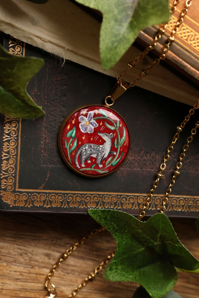 ✨ Ce médaillon artisanal peint à la main est un petit talisman, inspirée de l’imaginaire médiéval.