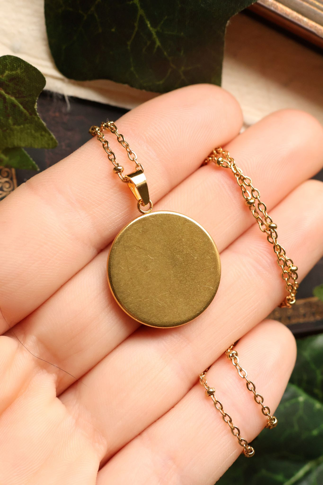 Le médaillon est monté sur un support en acier inoxydable doré, résistant à la corrosion et agréable à porter au quotidien.